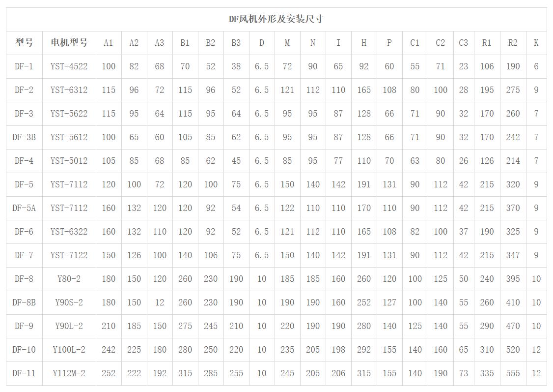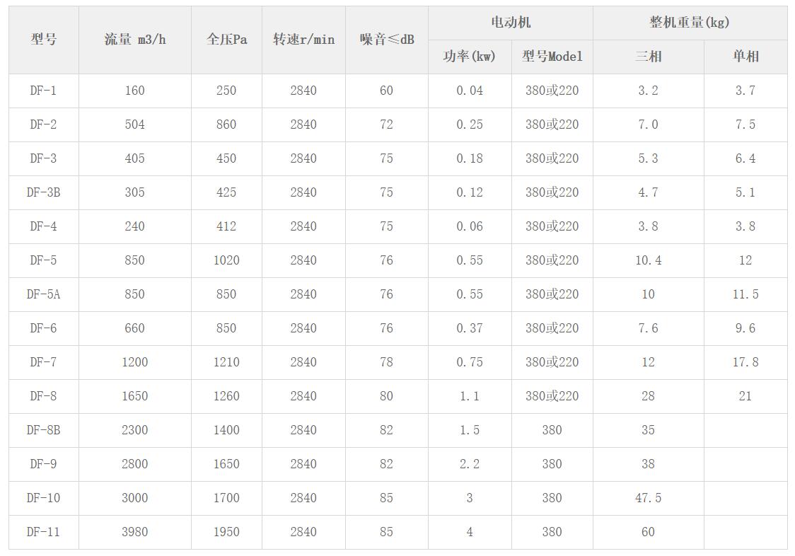 DF系列離心風(fēng)機(jī)性能參數(shù)